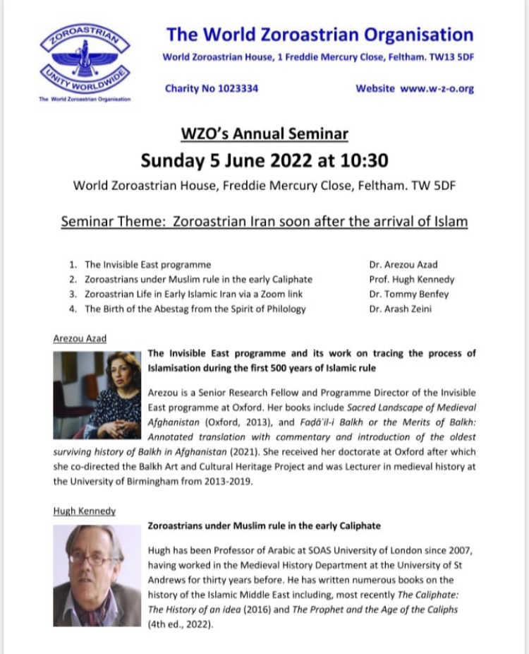 2. Zoroastrians under Muslim rule in the early Caliphate - Hugh Kennedy (via Zoom link)